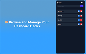 Ключевые функции включают плавные анимации переворота для визуально привлекательного процесса обзора, легкое редактирование и организацию карточек, а также возможность экспортировать колоды в формате TXT или PDF для офлайн-обучения или обмена. Настраиваемые сочетания клавиш повышают продуктивность, позволяя пользователям адаптировать свой рабочий процесс под свои нужды. Панель карточек превращает браузер Chrome в эффективный учебный инструмент, что делает его идеальным для всех, кто хочет ускорить свое обучение и улучшить запоминание.